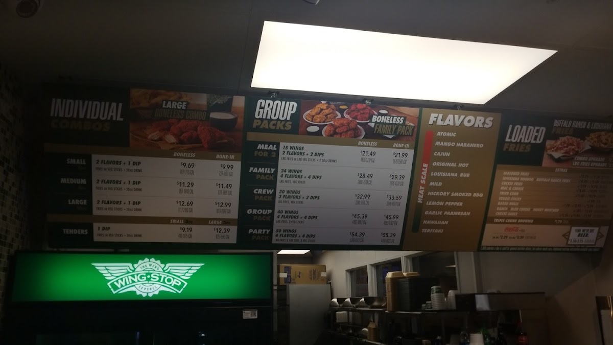 Complementing the meal are refreshing beverages including Dasani Bottled Water, Simply Lemonade, and an assortment of Coca-Cola and Dr Pepper soft drinks. Customers consistently praise Wingstop’s balance of flavorful wings and speedy service, making it a dependable hotspot for wing lovers craving genuine, robust taste without pretense.